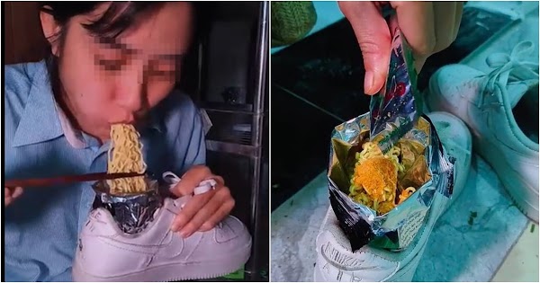 Trong clip, cô gái sống ở căn hộ chung cư có thang máy tiện lợi, hành lang sạch sẽ thì chắc hẳn nơi đây dành cho những người có thu nhập tốt. Vì vậy, việc cô nàng ăn mì trong chiếc giày không phải là vì cô kham khổ đến mức không có dụng cụ đựng mì mà vì cô nàng quá lười, không chịu dọn dẹp đống chén bẩn, hoặc là cố tình làm vậy để câu view.